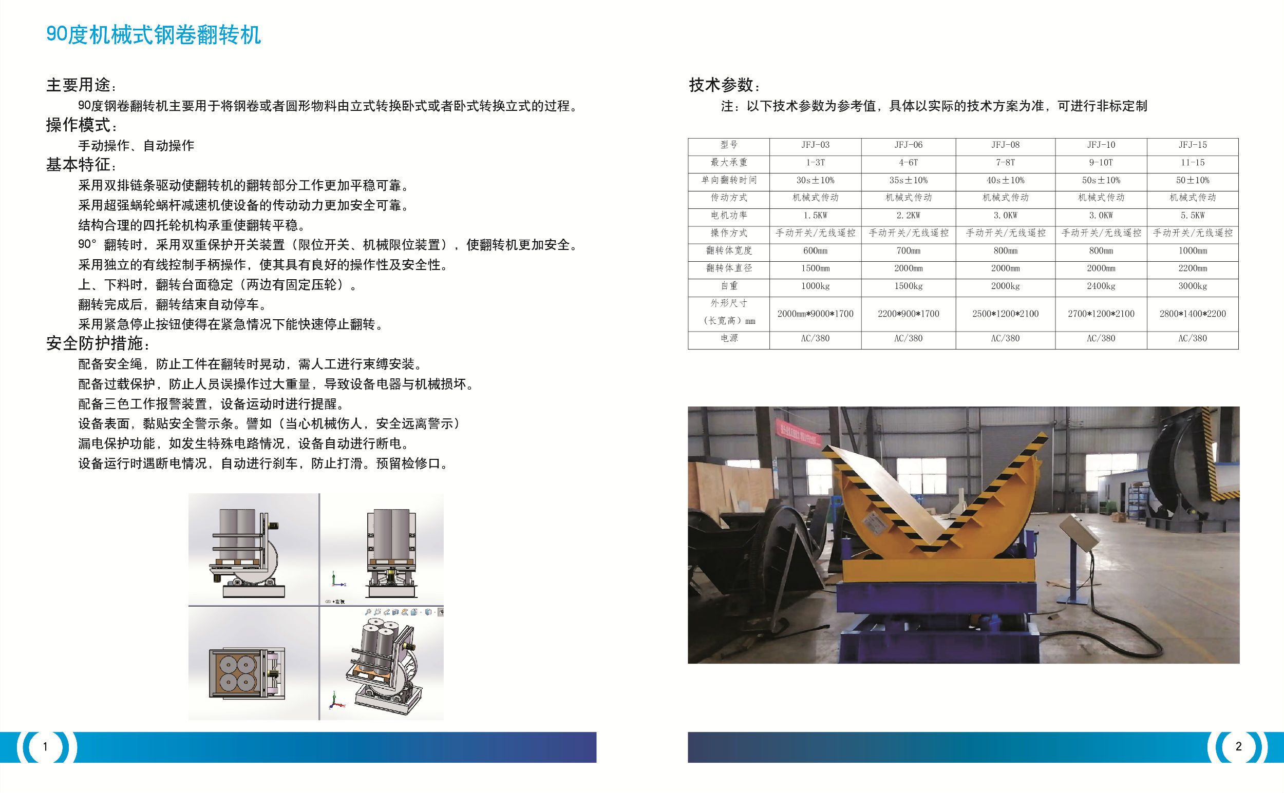 翻轉機用途: JFJ系列工業翻轉機能適應不同規格的產品的翻轉要求,實現將臥式轉換成立式或將立式轉換成臥式